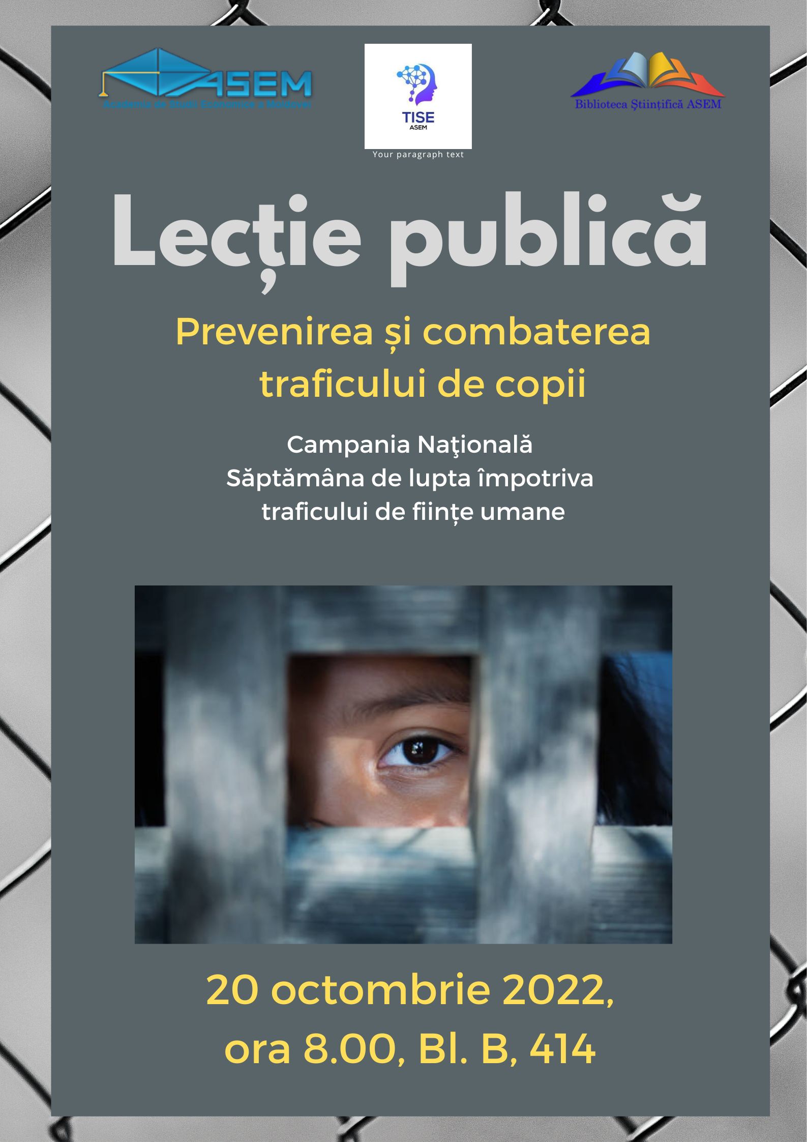 Invităm toți doritorii la lecția Publică Prevenirea și combaterea traficului de copii. bilbiotecar October 19, 2022 Noutati 0 Comments Post navigation Previous Previous post: Invităm toți doritorii la lecția Publică STOP Trafic de ființe umane!Next Next post: Invitație la lecția publică „Prevenirea și combaterea traficului de ființe umane”, care va avea loc 21 octombrie 2022, ora 11.20, Sala de Lectură „Comunicarea Colecțiilor”, Bloc F., 103. Detalii aici. Leave a ReplyYour email address will not be published. Required fields are marked *Comment * Name Email Website